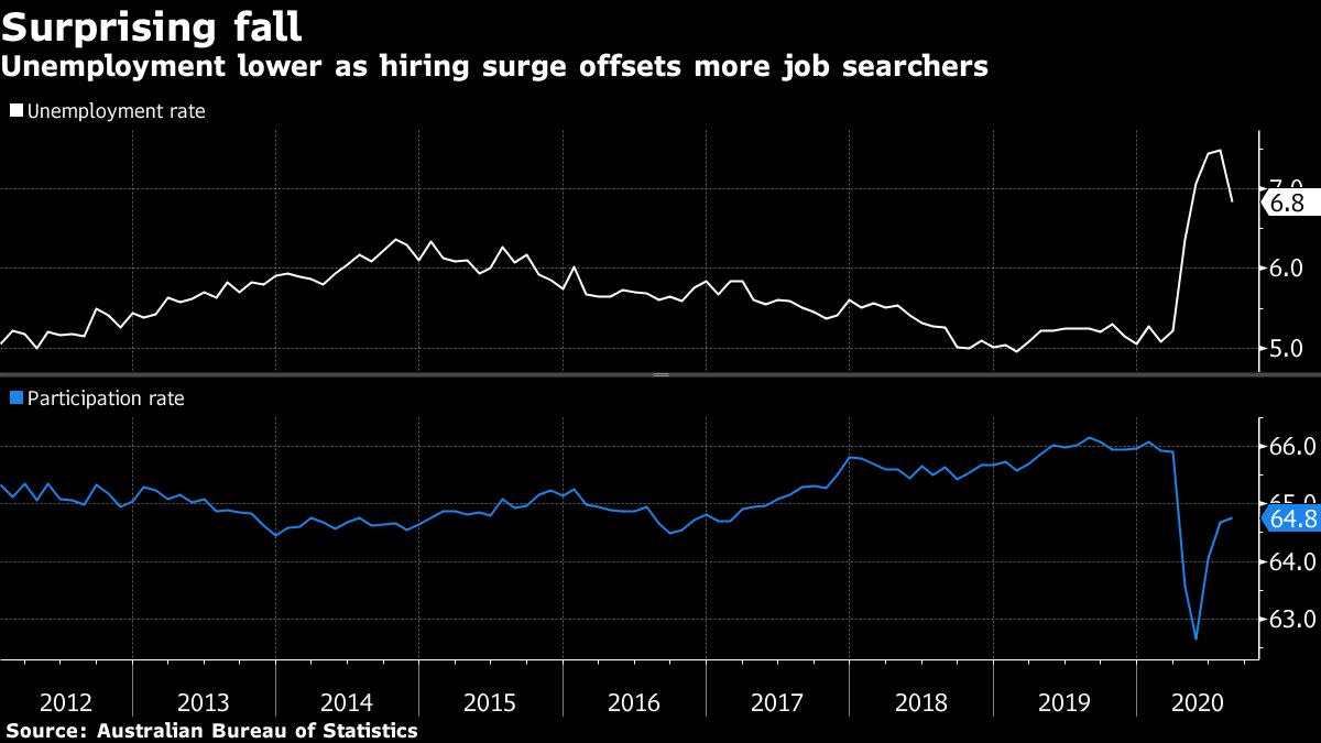 (Bloomberg) — Australian unemployment unexpectedly fell as fiscal and monetary stimulus helped the labor...